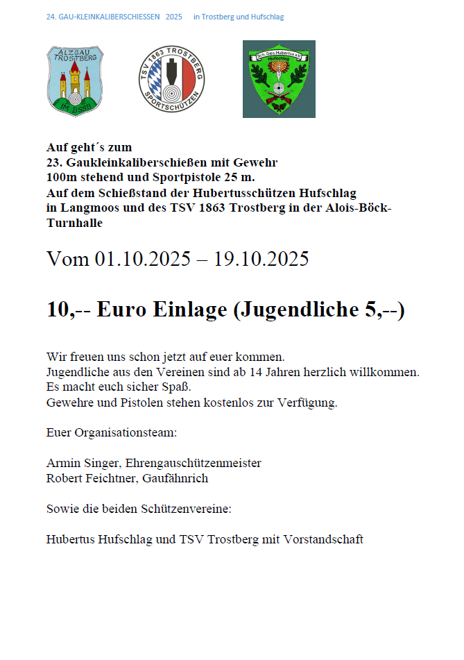 Wir gratulieren unserem Landesschützenkönig im Luftgewehr, Thomas Miesgang, und unseren amtierenden Gaukönigen 2024 und wünschen weiterhin "Gut Schuss".
